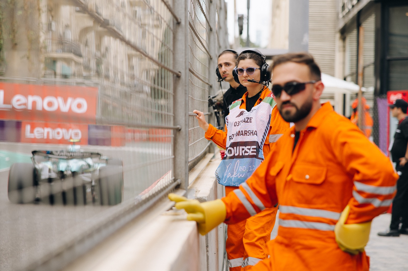 Ümumilikdə, marşallar zədələnmiş 6 bolidin tam bərpasını həyata keçirib, 1-ci, 3-cü, 4-cü və 15-ci döngələrdə baryerləri yoxlayıb bərpa ediblər və hər qırmızı bayraqdan sonra trasın təhlükəsizliyini bərpa etmək üçün dağıntıların təmizlənməsini təşkil ediblər.