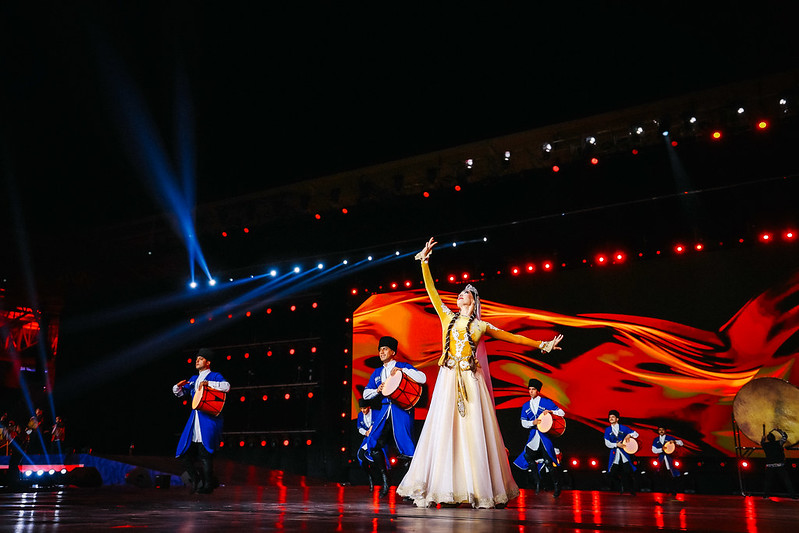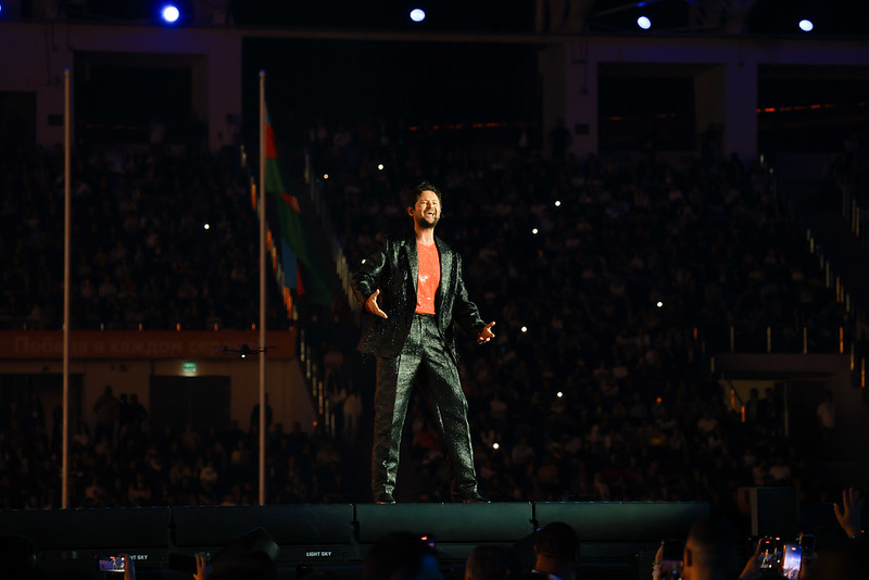 Церемония закрытия продолжилась художественной частью – выступлением ритм-группы «Натиг», Народной артистки Азербайджана Айгюн Кязымовой, Айсель Теймурзаде, НигярДжамал, Эльдара Гасымова, Чингиза Мустафаева, Надира Рустамли и других звезд.