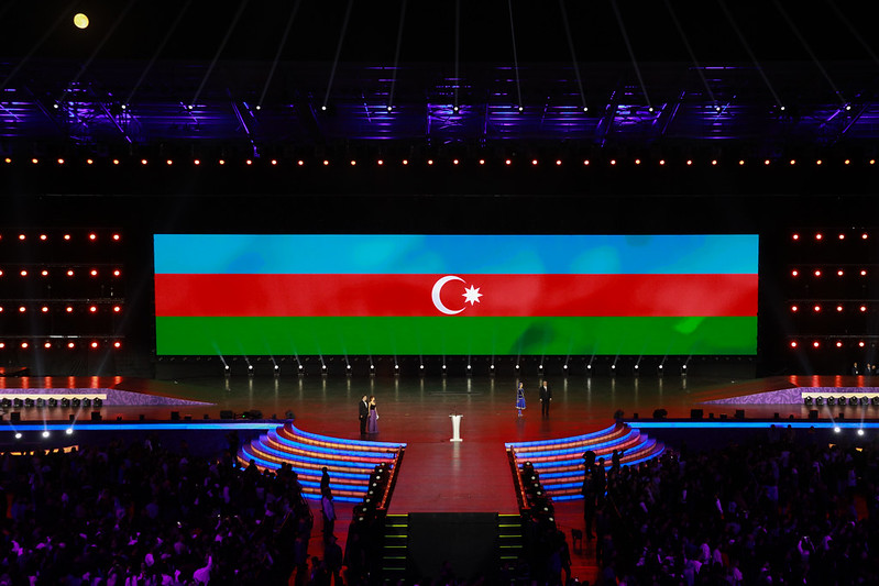После этого прозвучал государственный гимн Азербайджанской Республики.