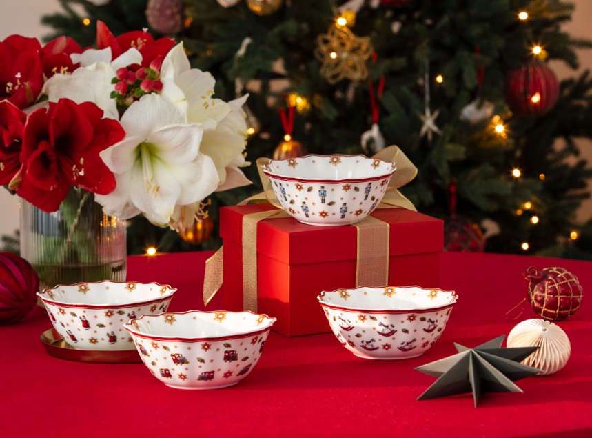 Этот Новый год особенный – любимая коллекция Toy’s Delight отмечает своё 15-летие. В течение этих лет её праздничный дизайн стал частью многочисленных семейных историй: от неспешных завтраков и уютных чаепитий до роскошных праздничных ужинов. Каждый раз стол украшался с заботой, собирая близких вместе и создавая атмосферу тепла, радости и единения. В классической палитре красного, зелёного и белого Toy’s Delight стала настоящим символом праздника, пробуждая тёплые воспоминания детства и волшебство новогодних традиций.
