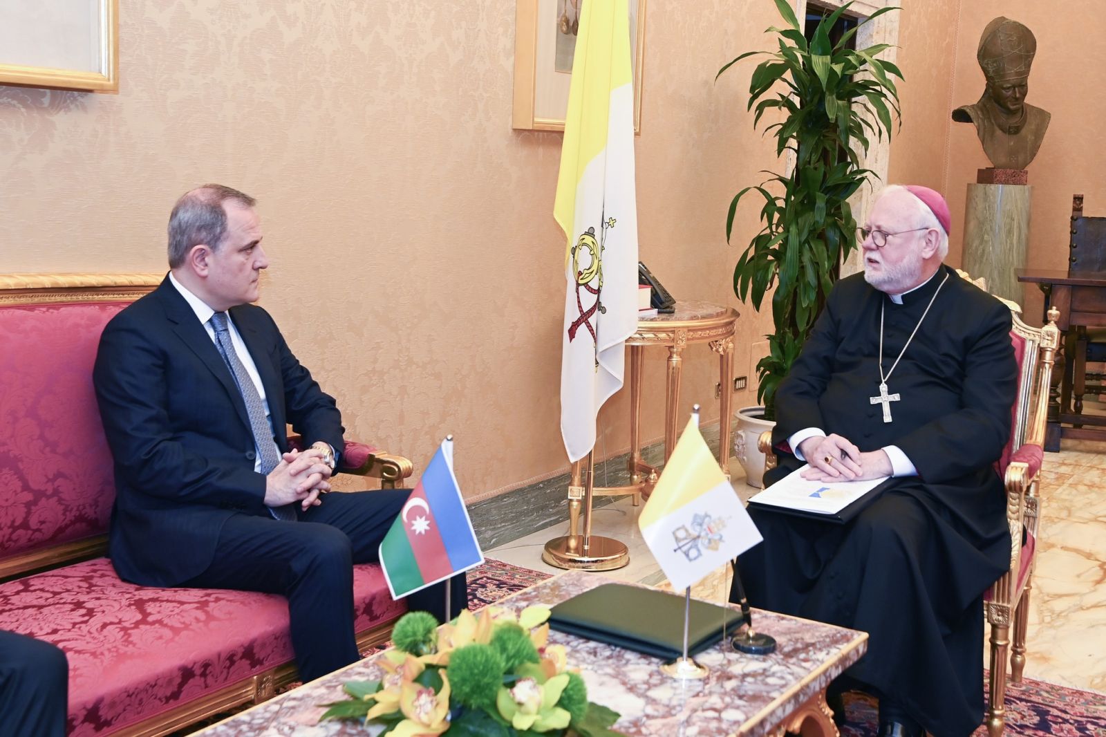 Министр иностранных дел Азербайджана Джейхун Байрамов в рамках официального визита в Ватикан встретился с секретарем Святого Престола по отношениям с государствами и международными организациями, архиепископом Полом Ричардом Галлахером.