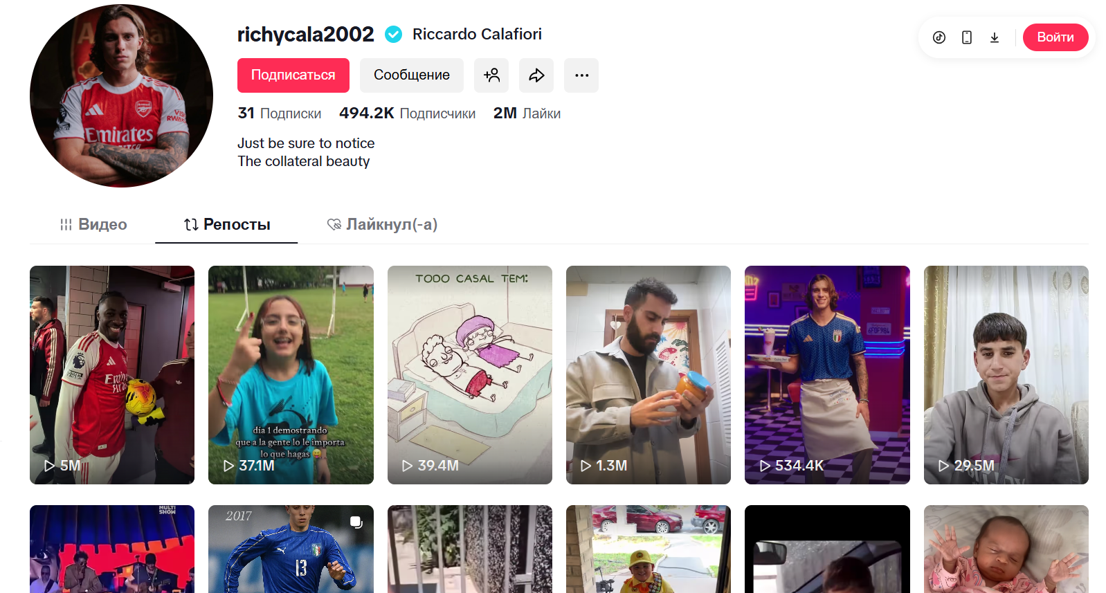 Огромный толчок к популярности Пярвина Алиева пришёл после того, как его видео репостнул итальянский футболист Риккардо Калафьори, защитник английского клуба «Арсенал» и сборной Италии. Благодаря этому ролик завирусился по всему миру: его стали смотреть, комментировать и переснимать пользователи из разных стран. На данный момент видео набрало уже 29,5 миллиона просмотров, превратив обычного подростка из Бейлягана в настоящую интернет-звезду.