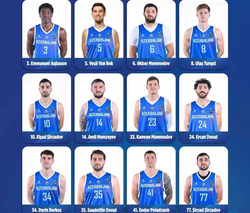 Объявлен состав мужской сборной Азербайджана по баскетболу на предстоящий выездной матч предварительного отборочного этапа чемпионата Европы-2029 против команды Северной Македонии