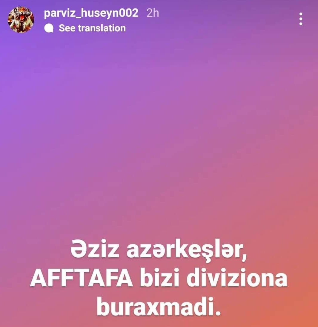 Президент азербайджанской футбольной команды «Хан-Лянкяран» Парвиз Гусейнов, чья команда в прошлом сезоне выступала в Региональной лиге, позволил себе оскорбительные высказывания в адрес АФФА. Причина, судя по всему, в том, что его команду не допустили в первый дивизион.