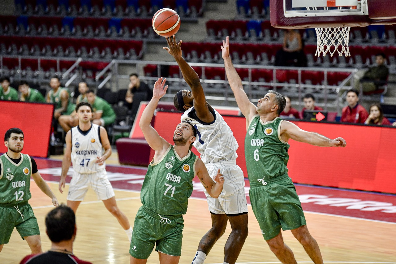 1 ноябрь 2025 16:31 Нахчыванцы празднуют победу Azerisport.com представляет фоторепортаж матча 5-го тура Азербайджанской баскетбольной лиги между «Нахчываном» и «Губой» (86:78). (ФБА)